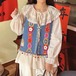 ラウンドネックレトロチェック柄ブラウス ・8142