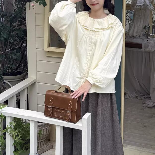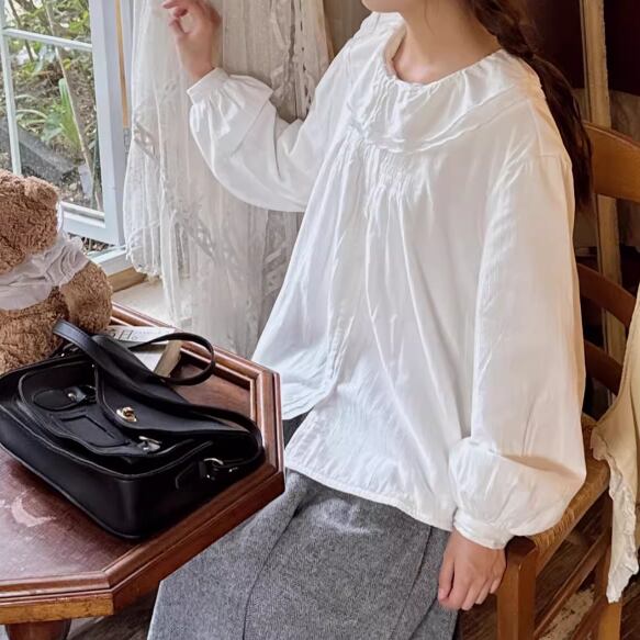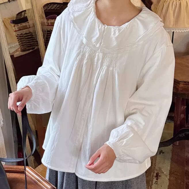 ラウンドネックレトロチェック柄ブラウス ・8142