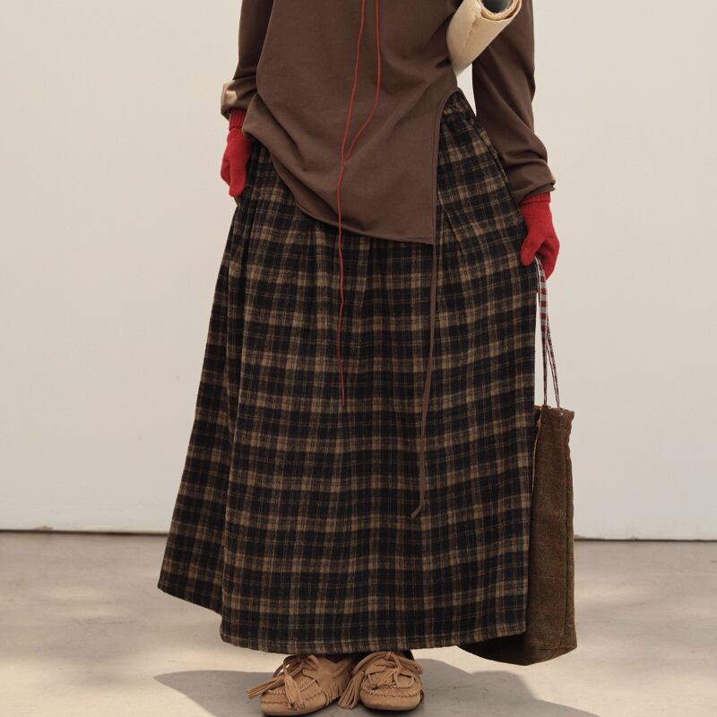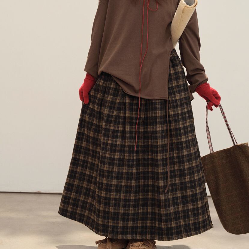 レトロチェック柄フレアスカート ・8803