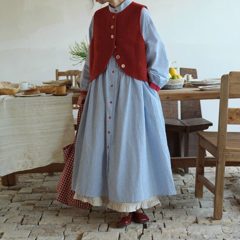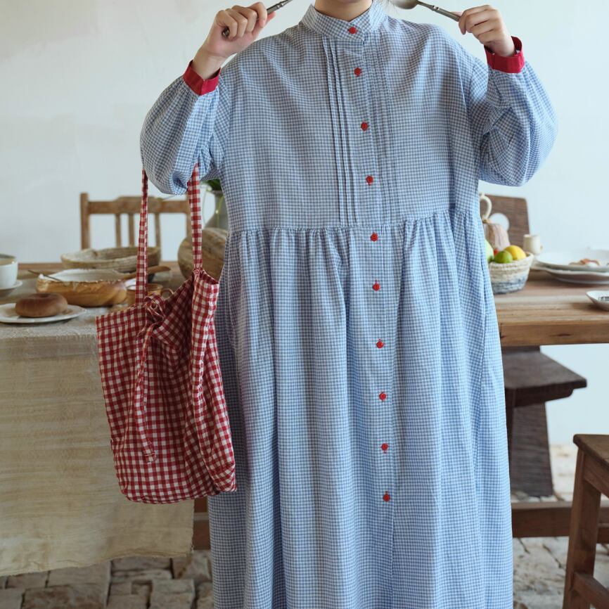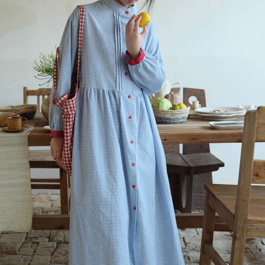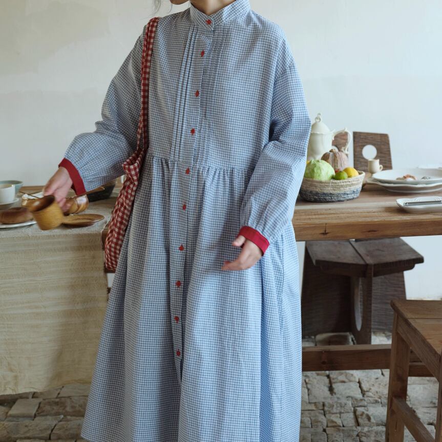 3色/レトロチェック柄シャツロングワンピ ・8186
