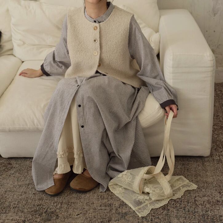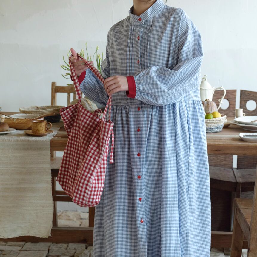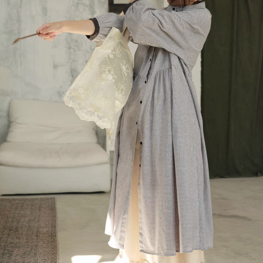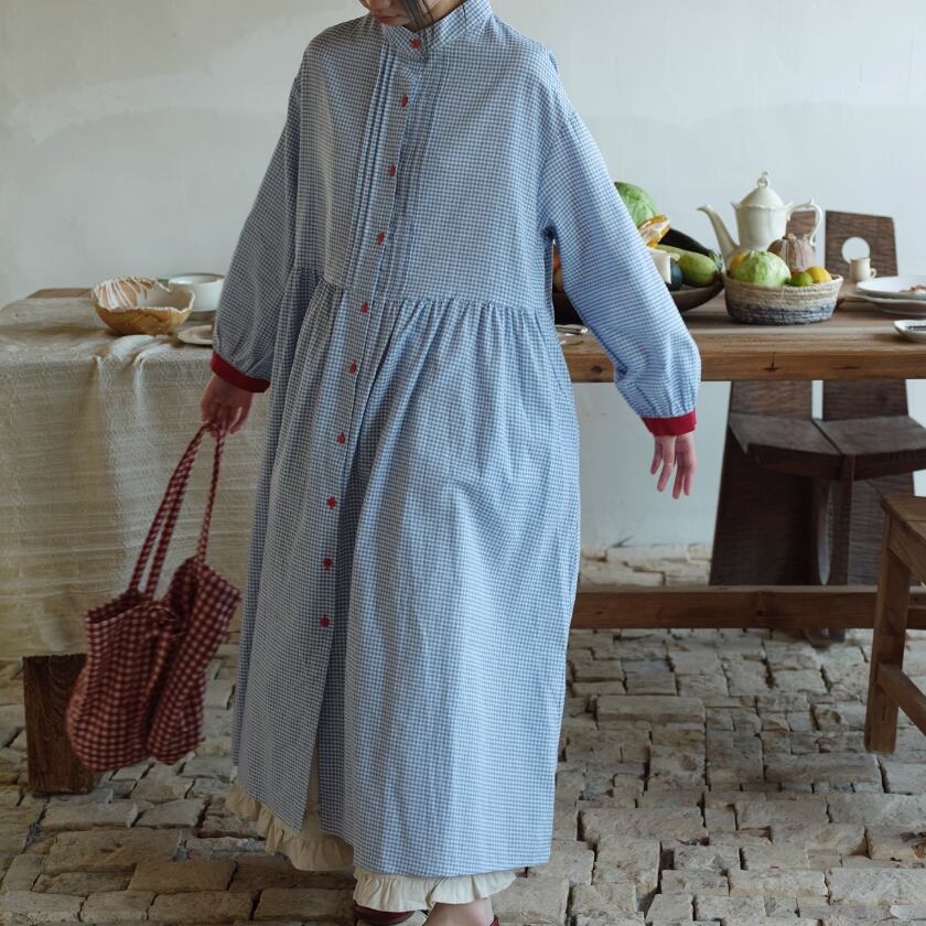2色/チェック柄シャツワンピース ・7845