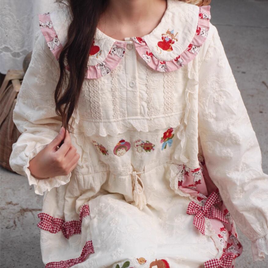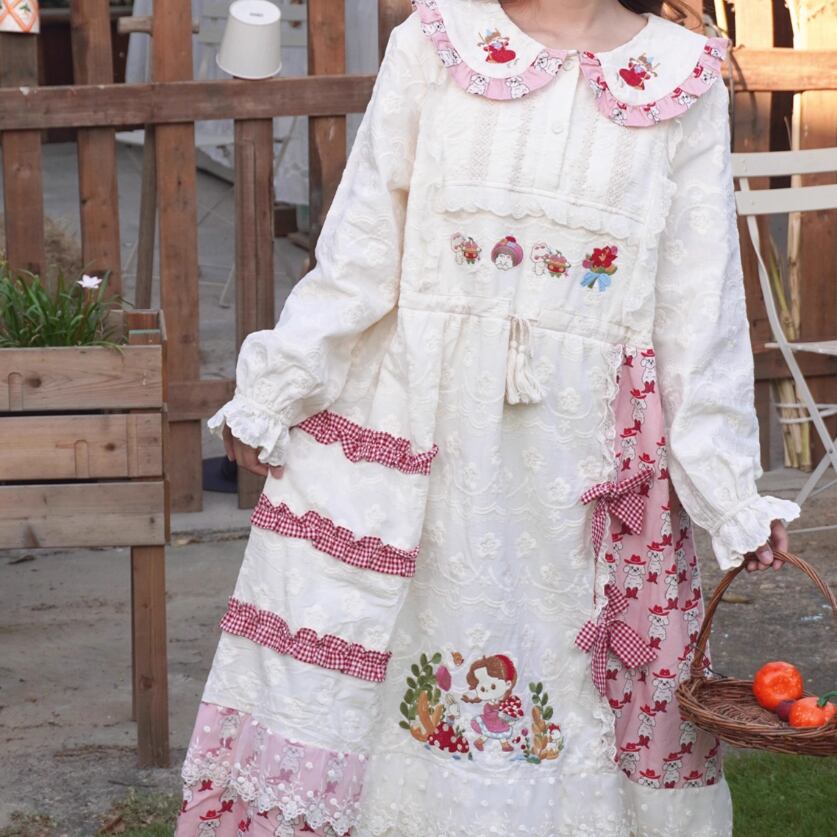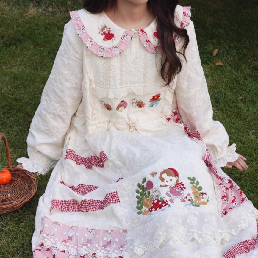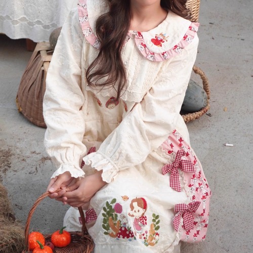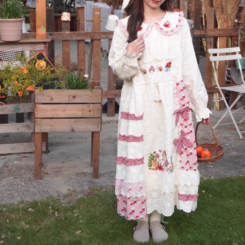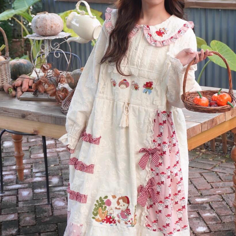 レース貼りコーデュロイロングワンピ ・6410