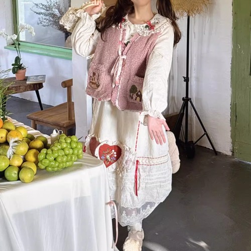 ノーカラーニットベスト ・8346