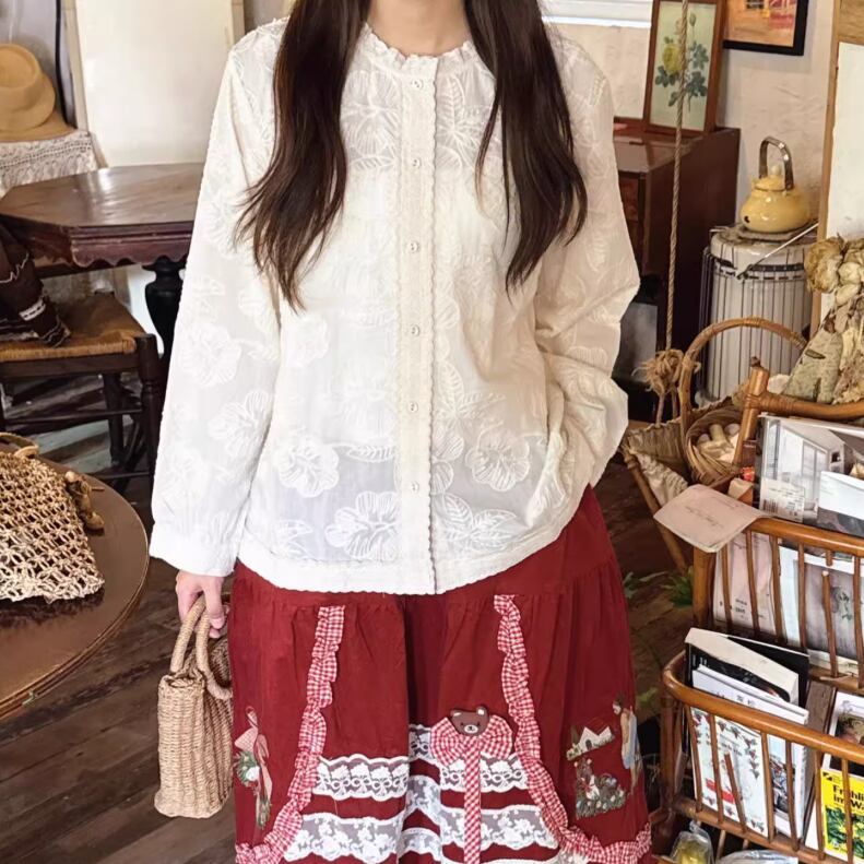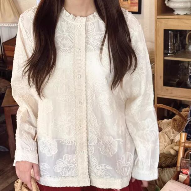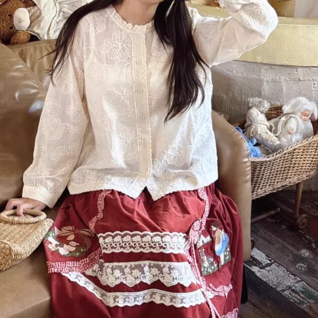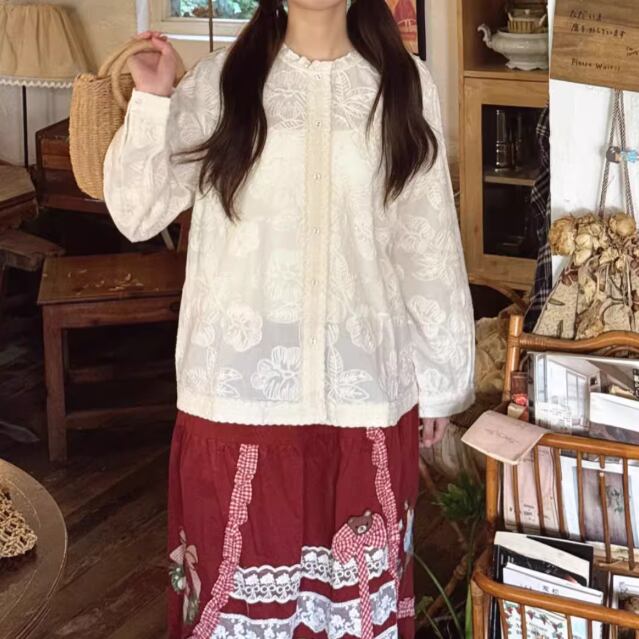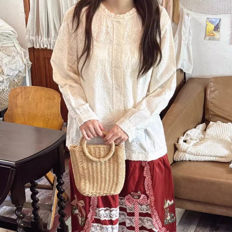 ラウンドネックレトロチェック柄ブラウス ・8142