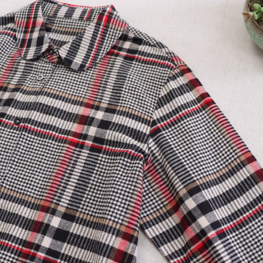 ラウンドネックレトロチェック柄ブラウス ・8142