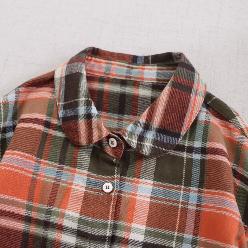 ラウンドネックレトロチェック柄ブラウス ・8142