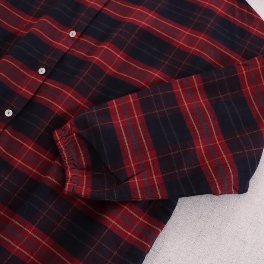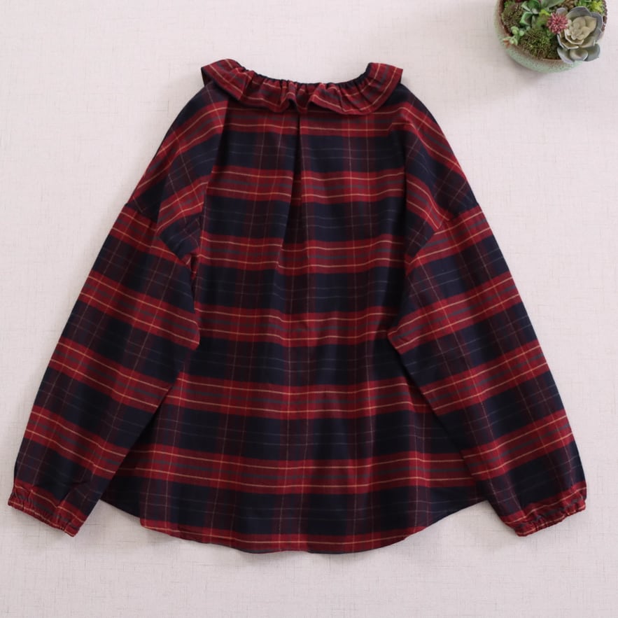 ラウンドネックレトロチェック柄ブラウス ・8142