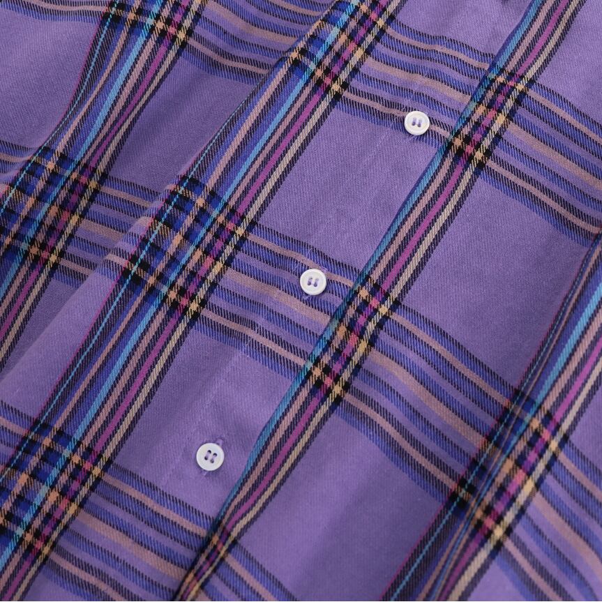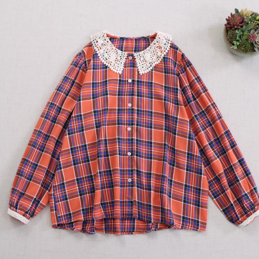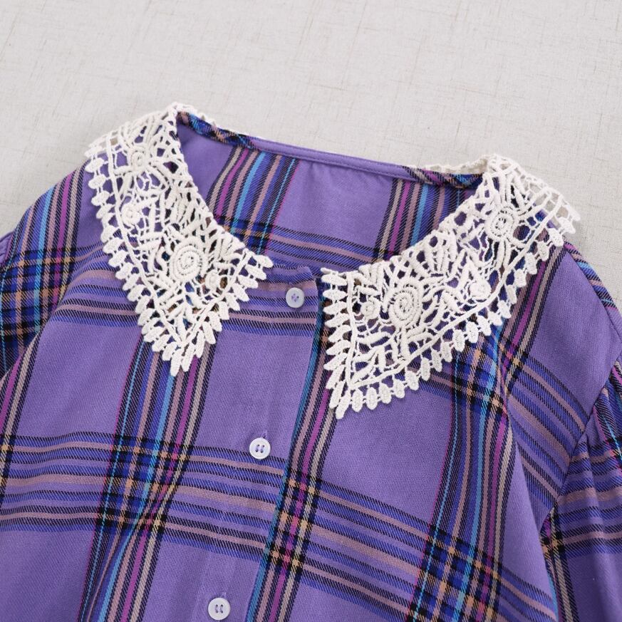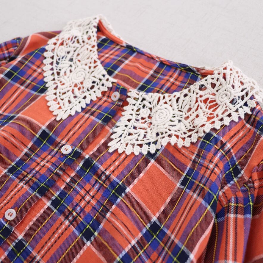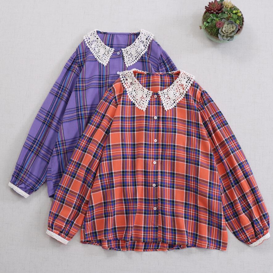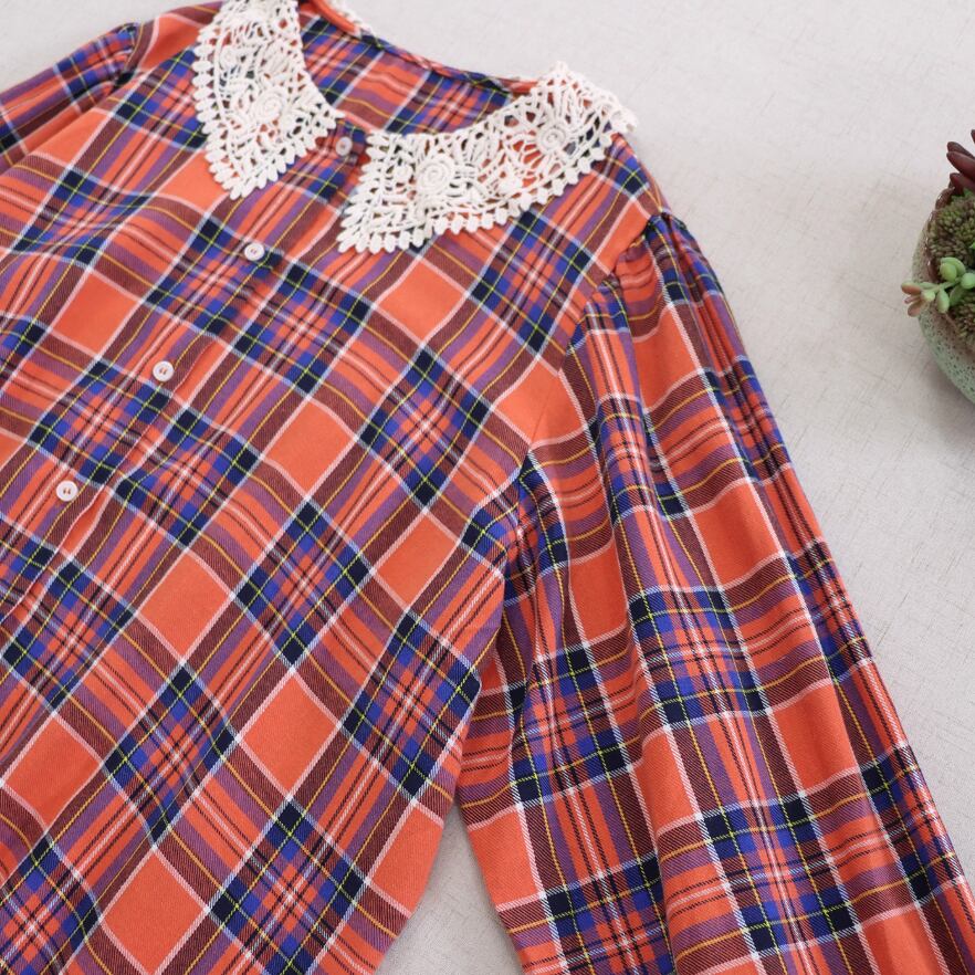 ラウンドネックレトロチェック柄ブラウス ・8142