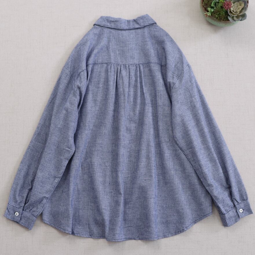 ラウンドネックレトロチェック柄ブラウス ・8142