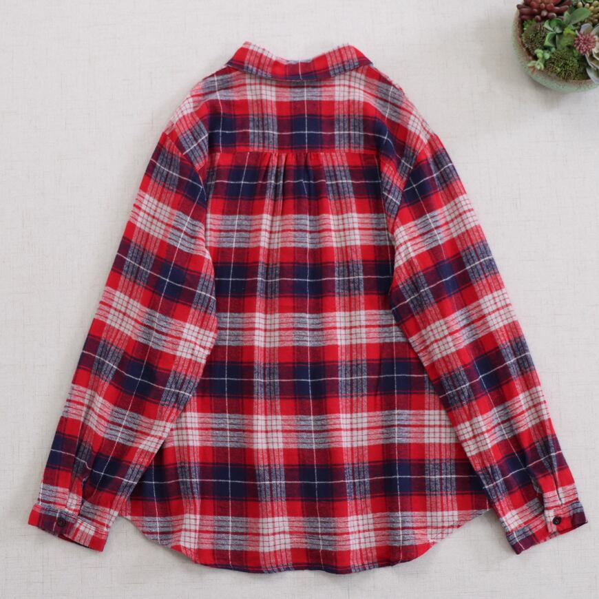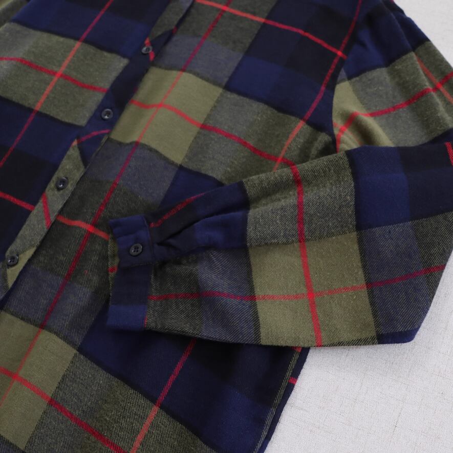 ラウンドネックレトロチェック柄ブラウス ・8142