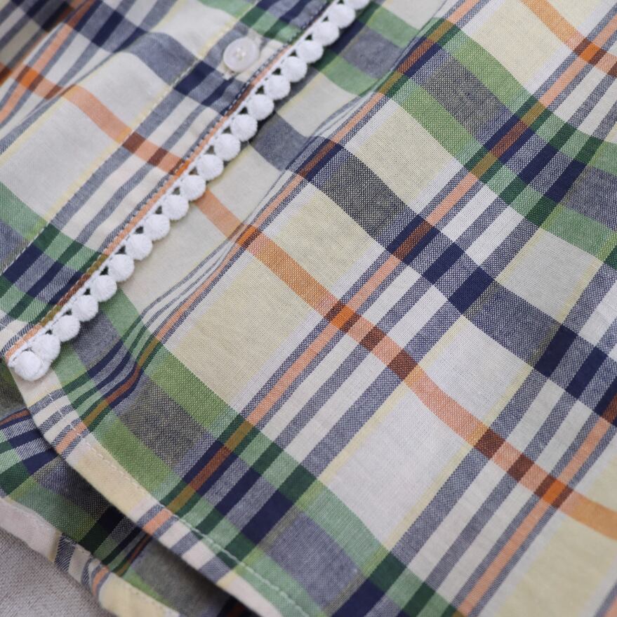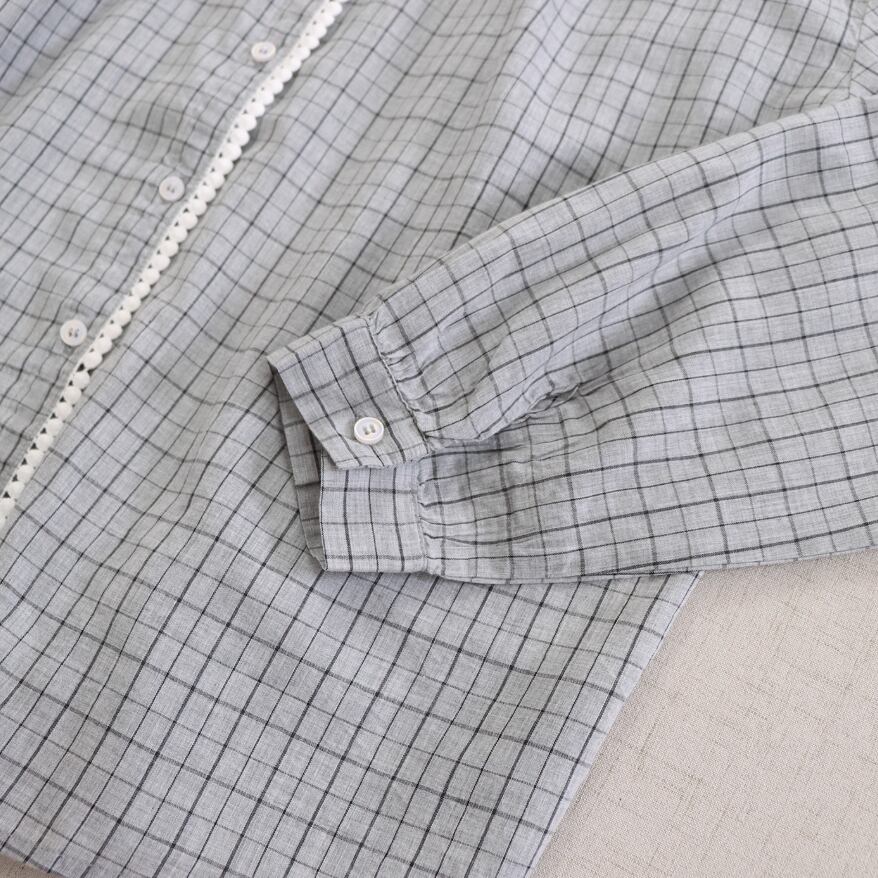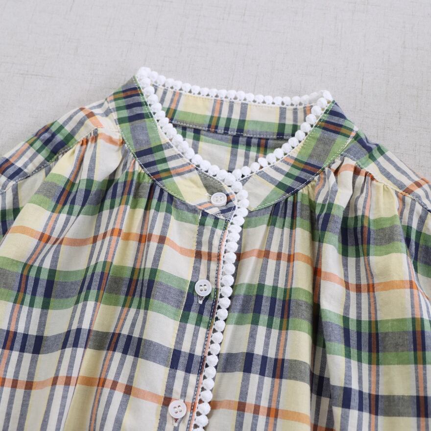 ラウンドネックレトロチェック柄ブラウス ・8142