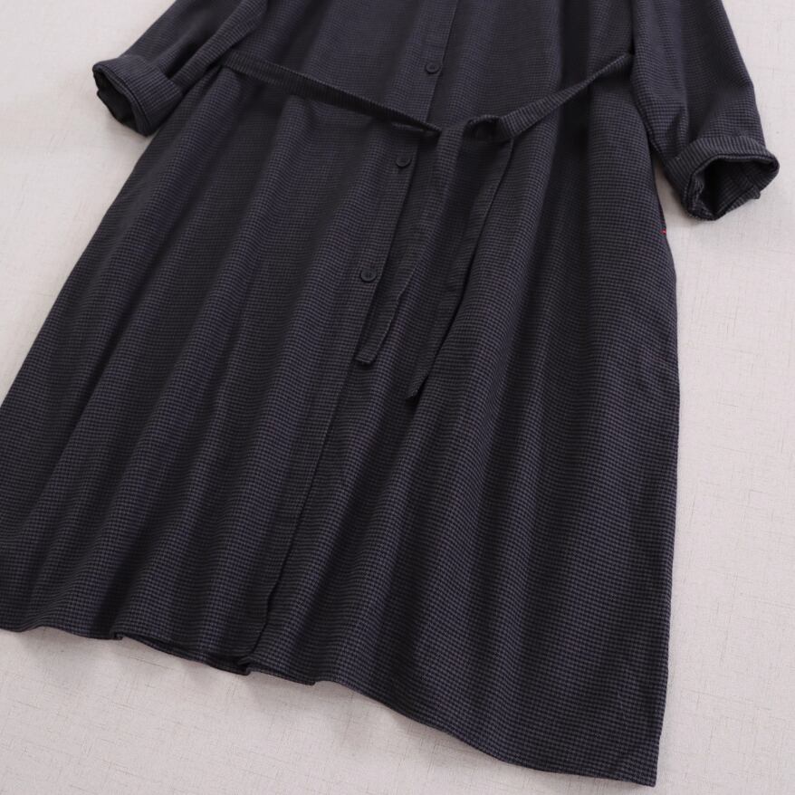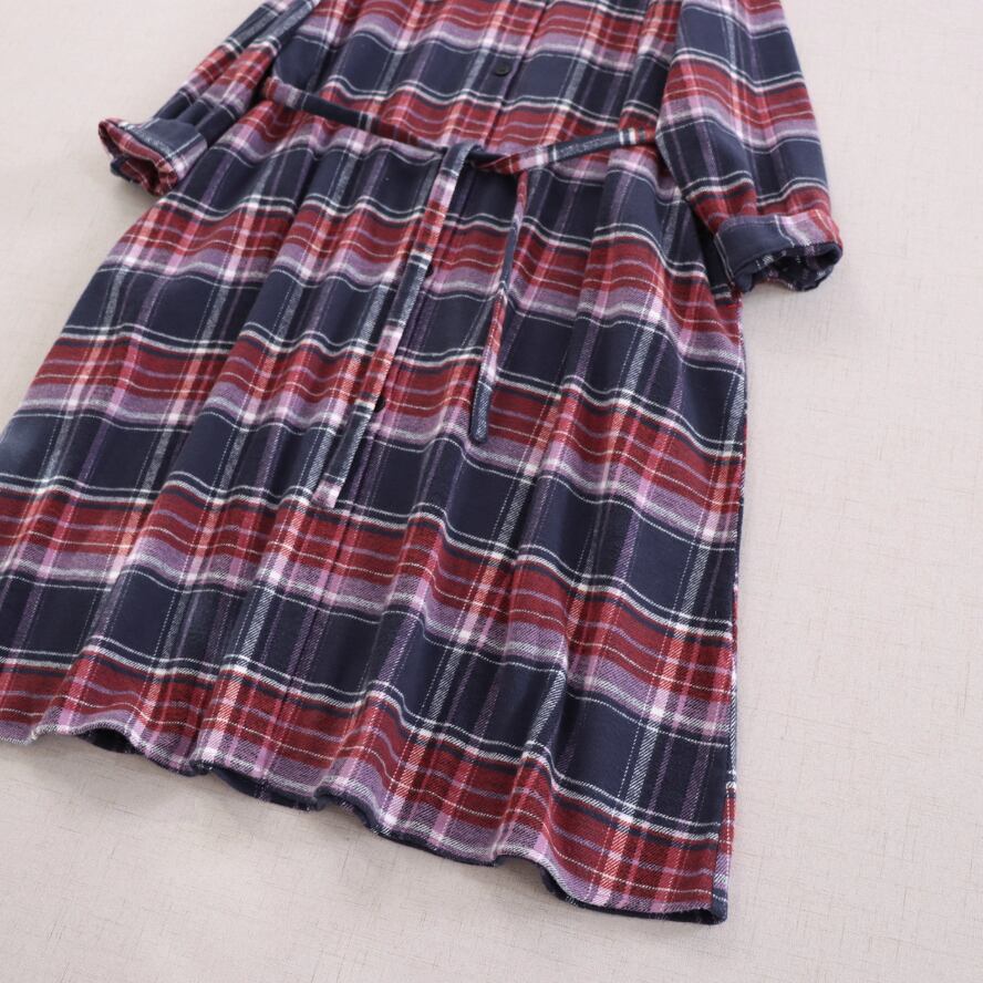 3色/レトロチェック柄シャツロングワンピ ・8186