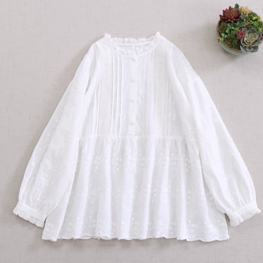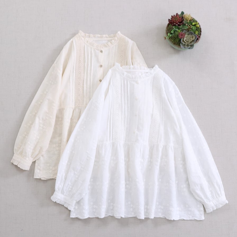 2色/フリルカラーコットンブラウス ・8607
