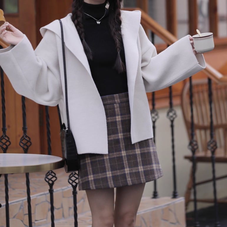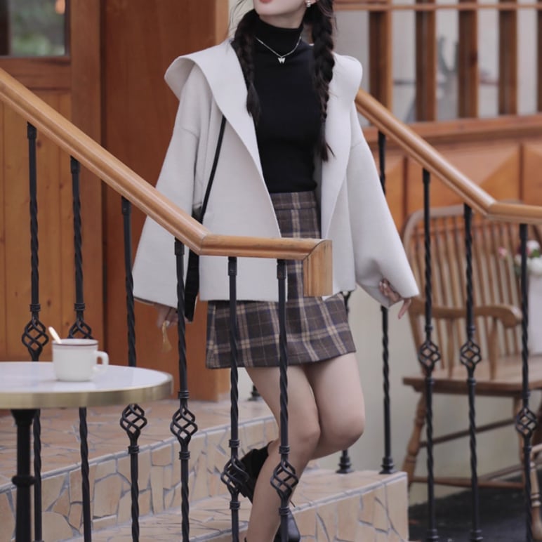 裏地チェック柄トグルボタンコート ・8717