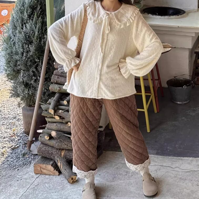 2種/レース貼りコーデュロイパンツ ・8552
