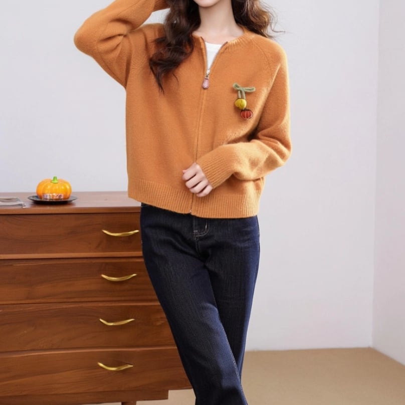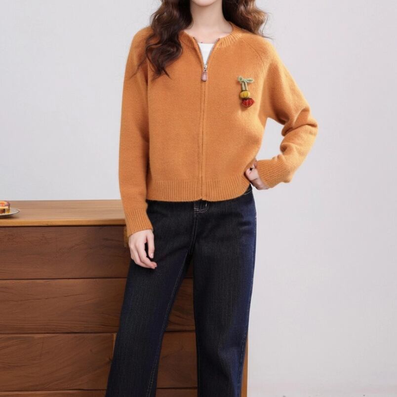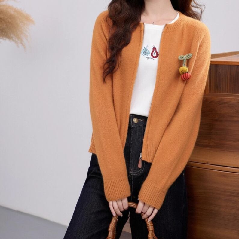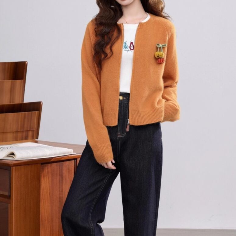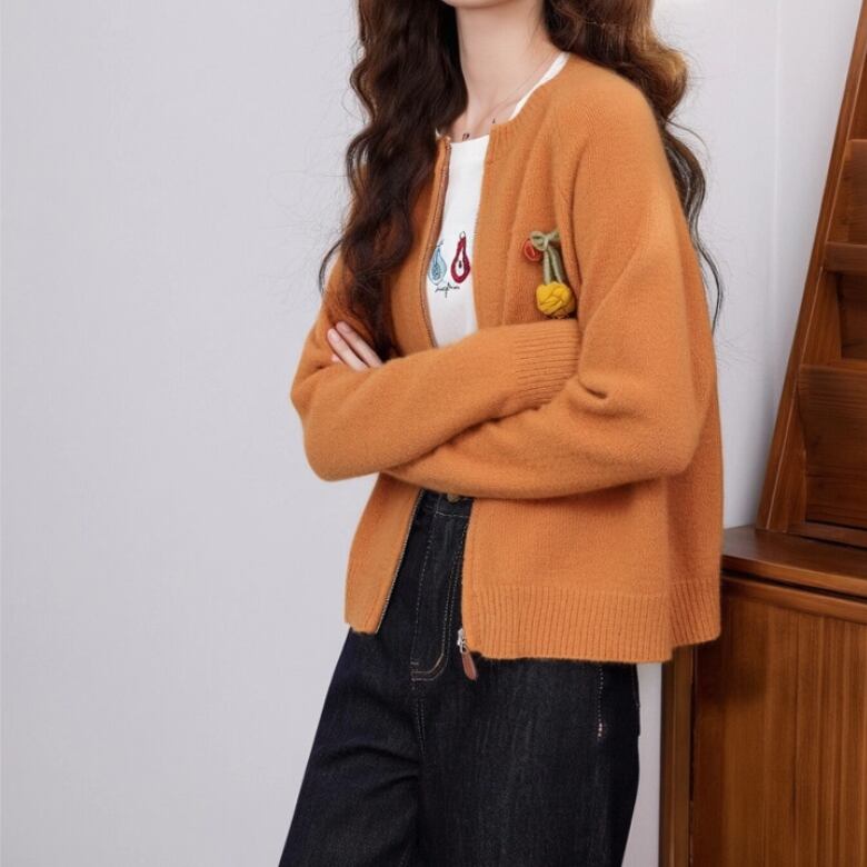 3色/フラワー刺繍ニットカーデ ・8907