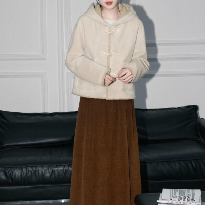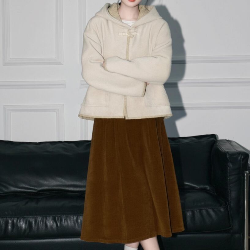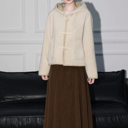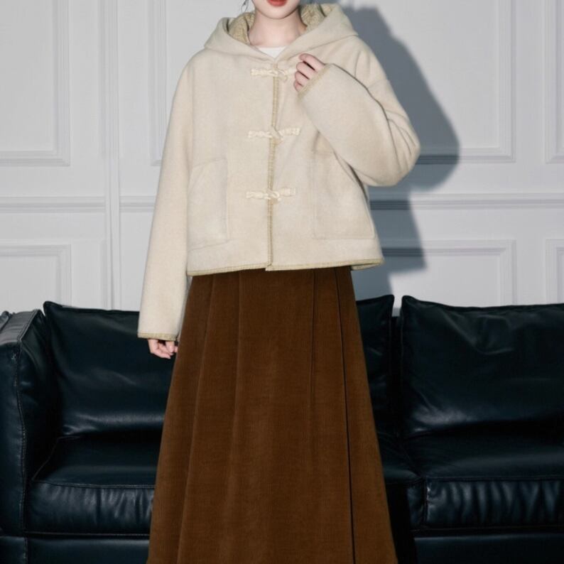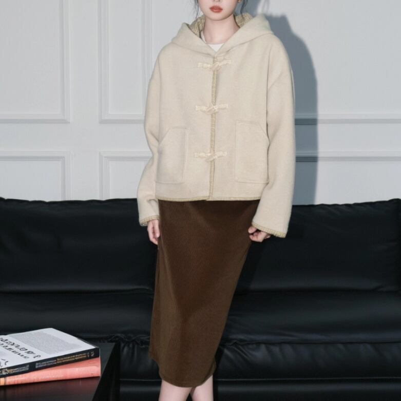 裏地チェック柄トグルボタンコート ・8717