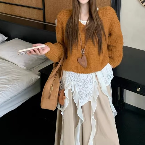 2色/サイドスリットニットトップス ・9385