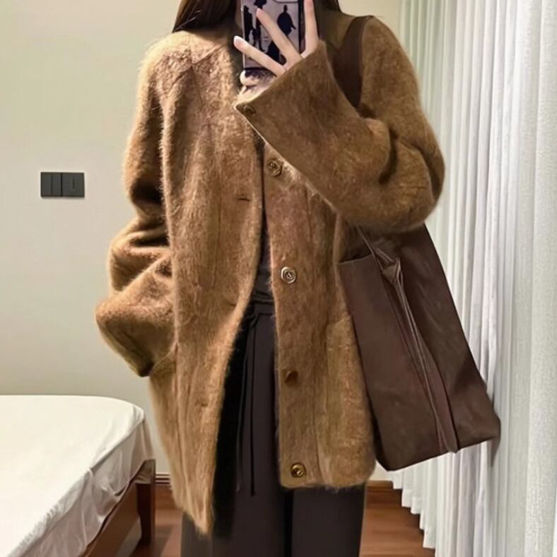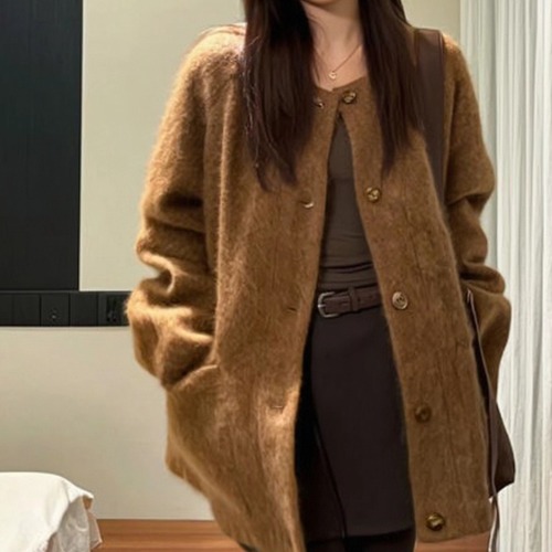 ノーカラーニットロングコート ・9036