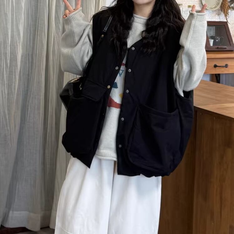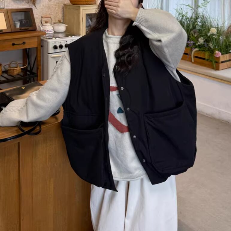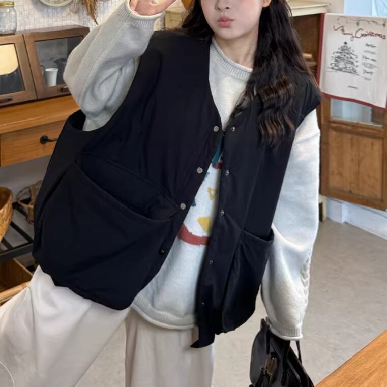 ノーカラーニットベスト ・3117