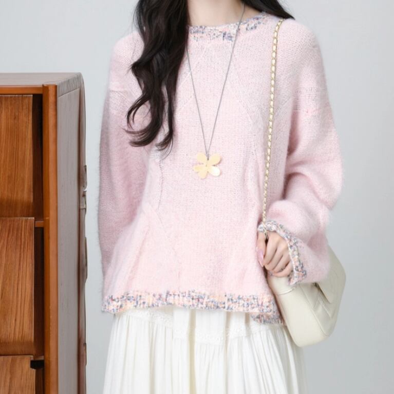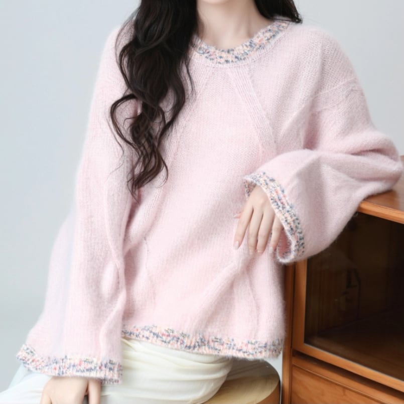 2色/サイドスリットニットトップス ・9385