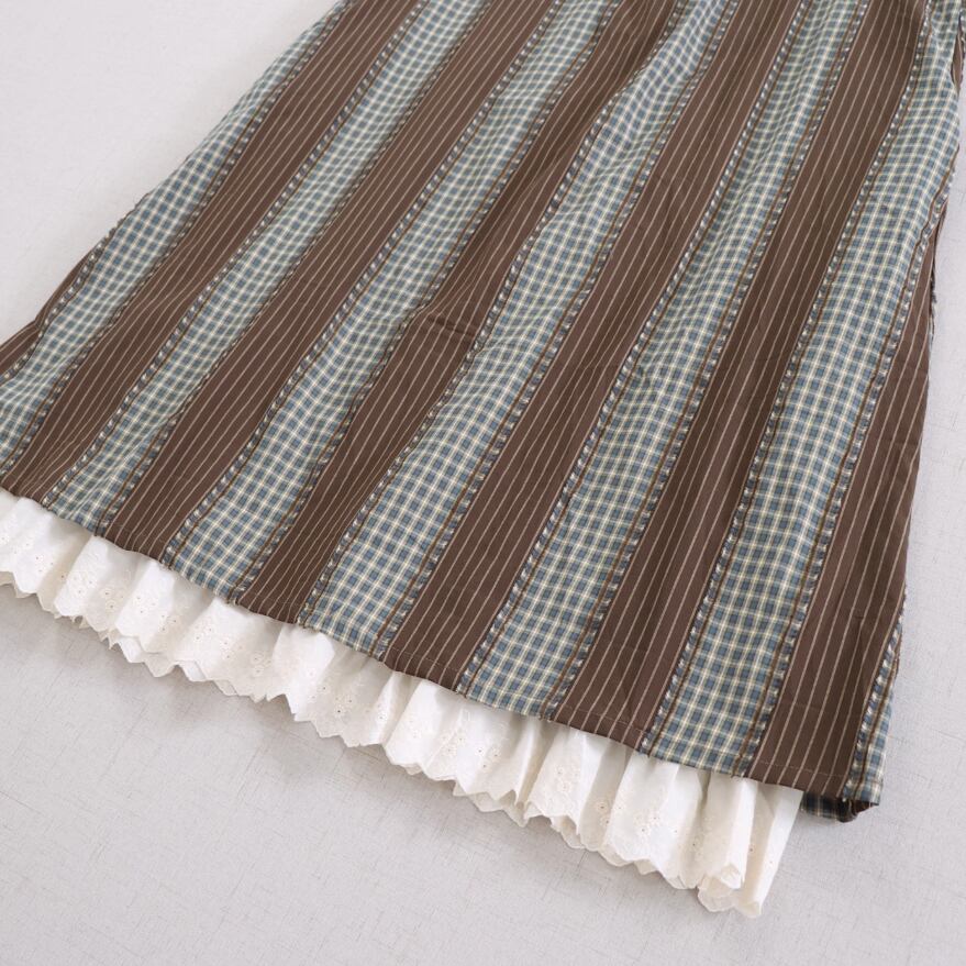レース貼りギャザージャンパースカート ・6383