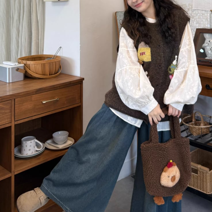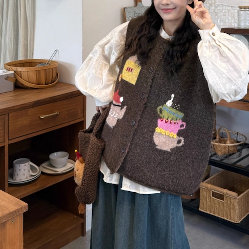 2色/ランダムフラワー刺繍ニットベスト ・9599