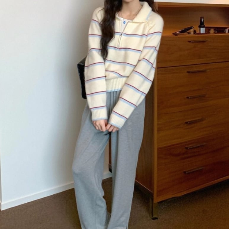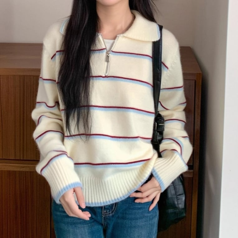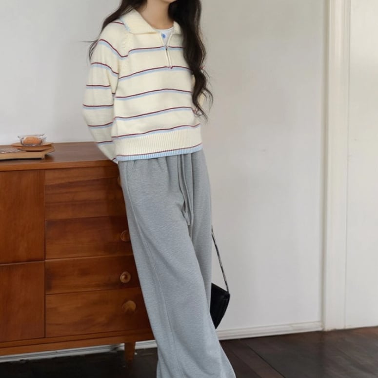 リボン刺繍ラインニットカーディガン ・9676