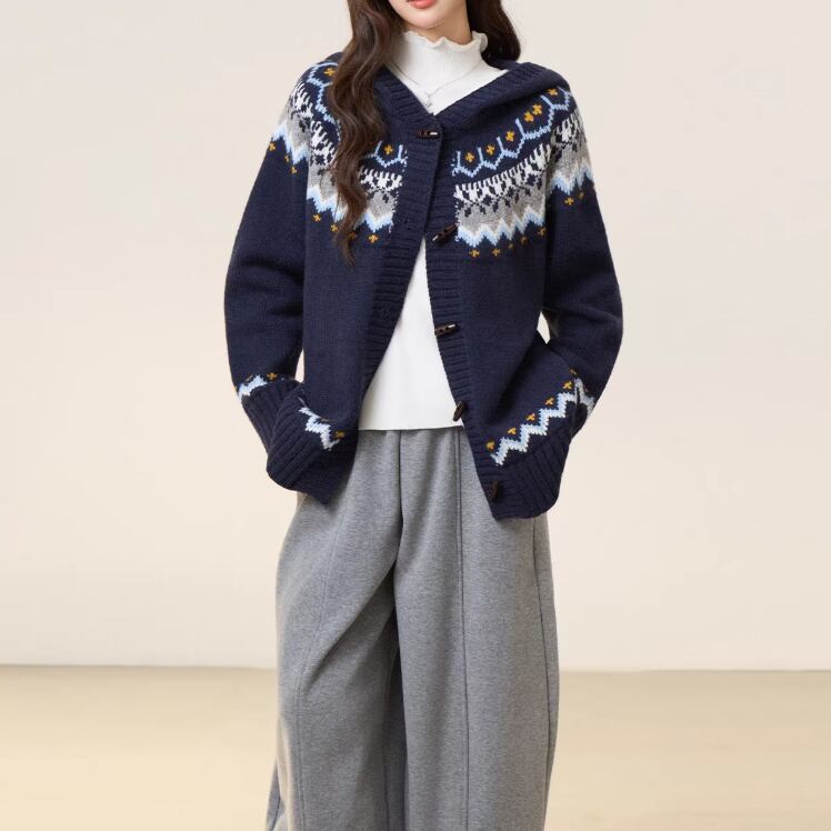 ボタンネックニットカーディガン ・9654