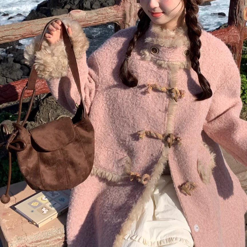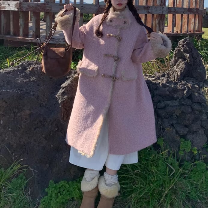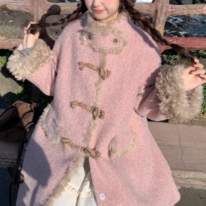裏地チェック柄トグルボタンコート ・8717