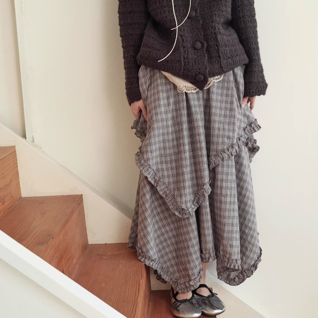 バイアスフリルチェック柄スカート ・9966
