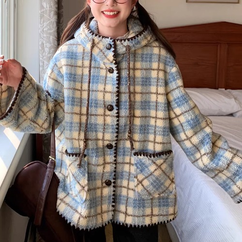 裏地チェック柄トグルボタンコート ・8717