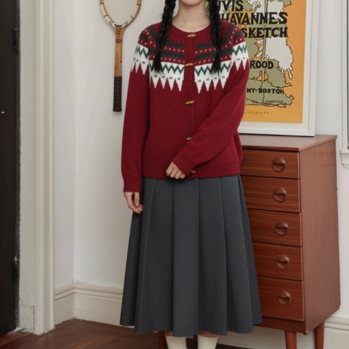 3色/フラワー刺繍ニットカーデ ・8907