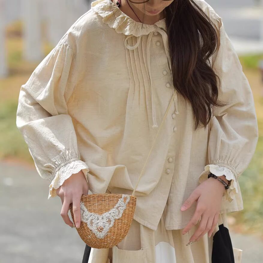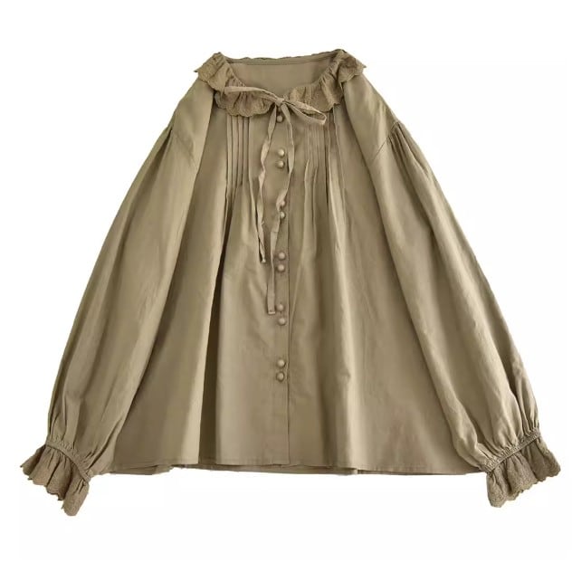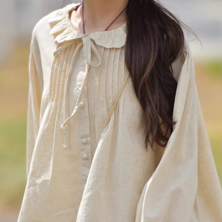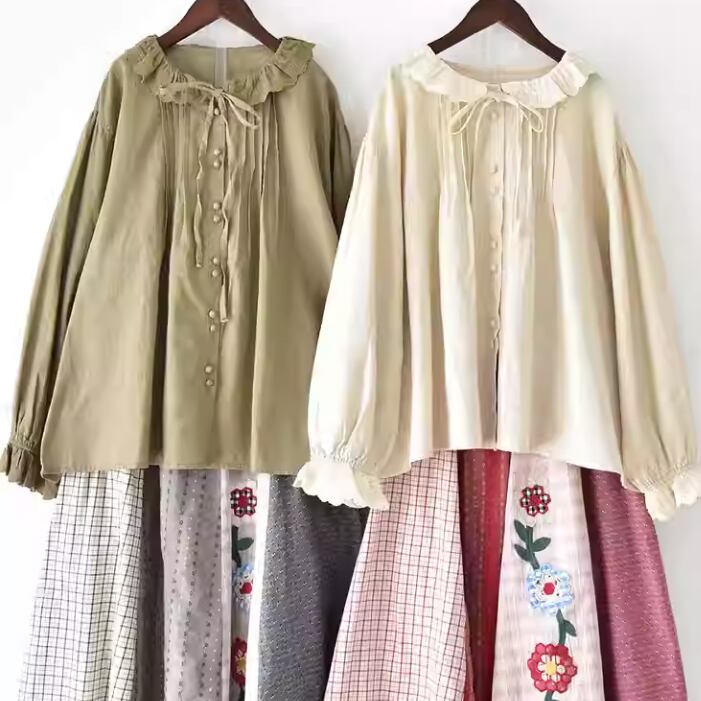 2色/フリルカラーコットンブラウス ・8607