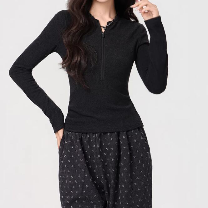 レース貼りネックトップス ・9909