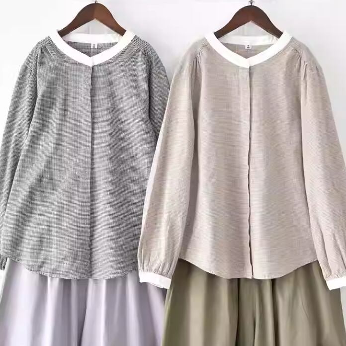 2色/フリルカラーコットンブラウス ・8607