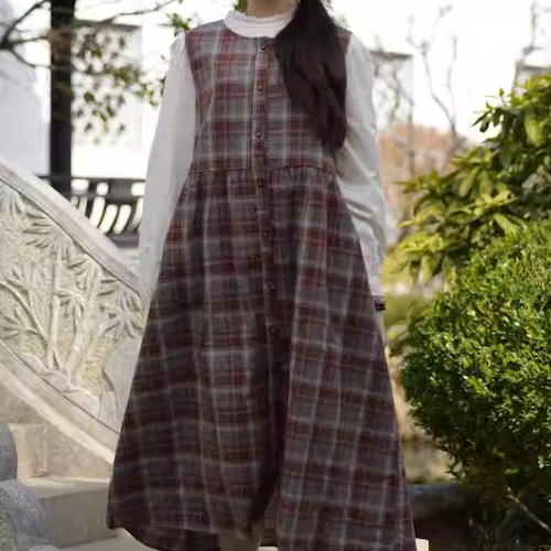 ピンタックVネックリネンジャンスカ ・7269