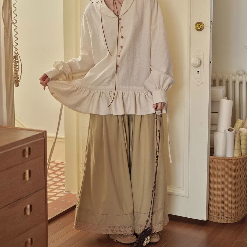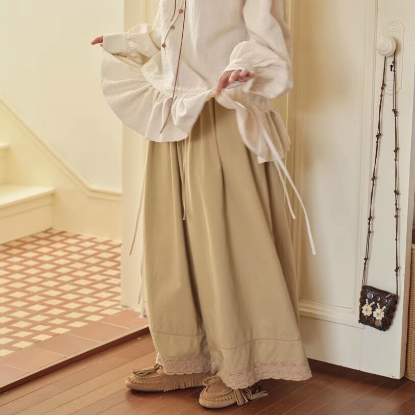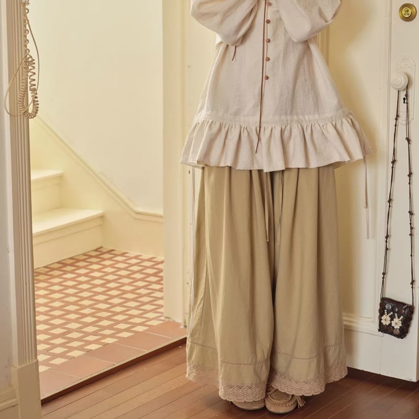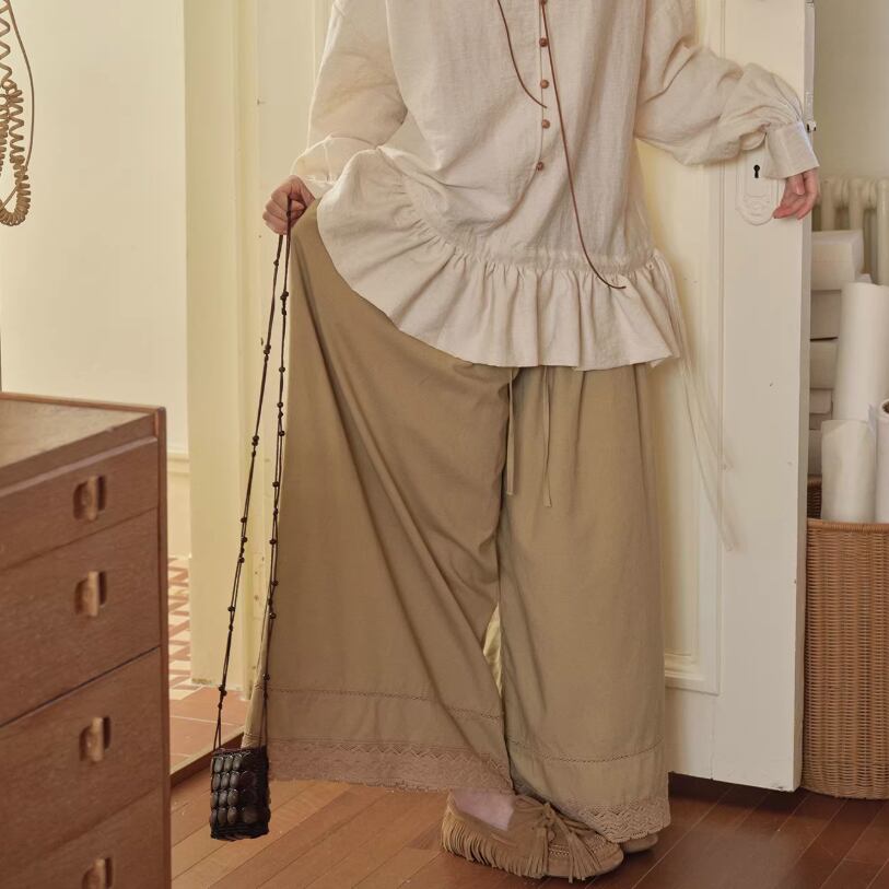 2色/裾フリルワイドパンツ ・10003