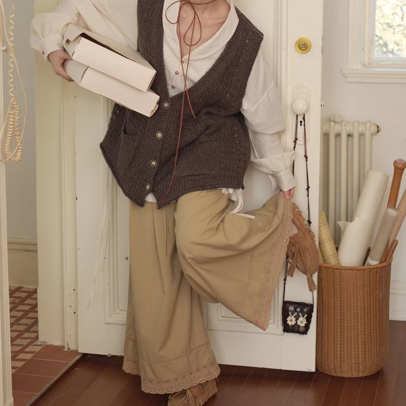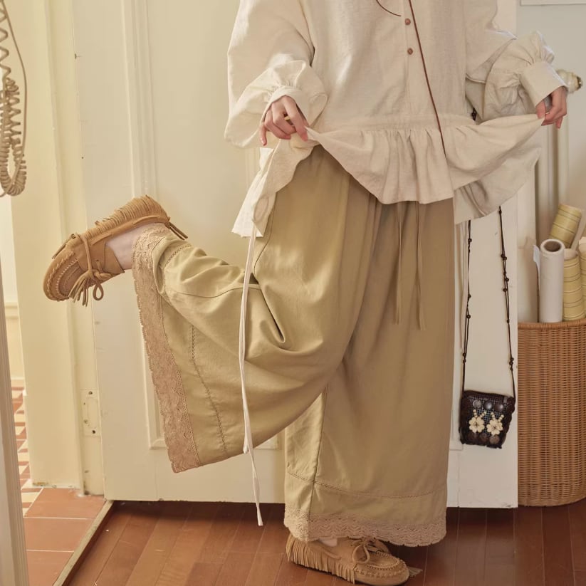 2種/レース貼りコーデュロイパンツ ・8552