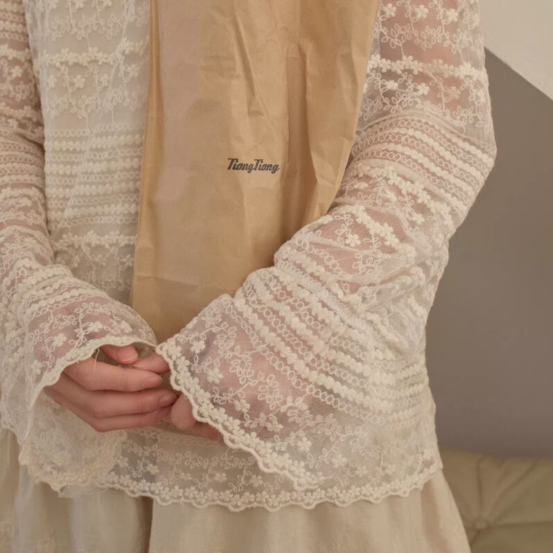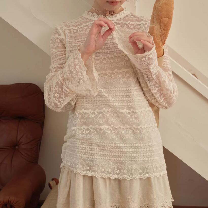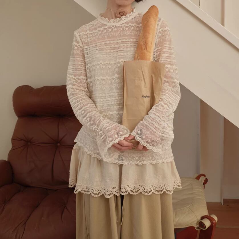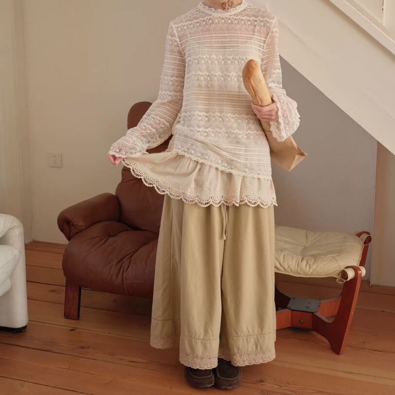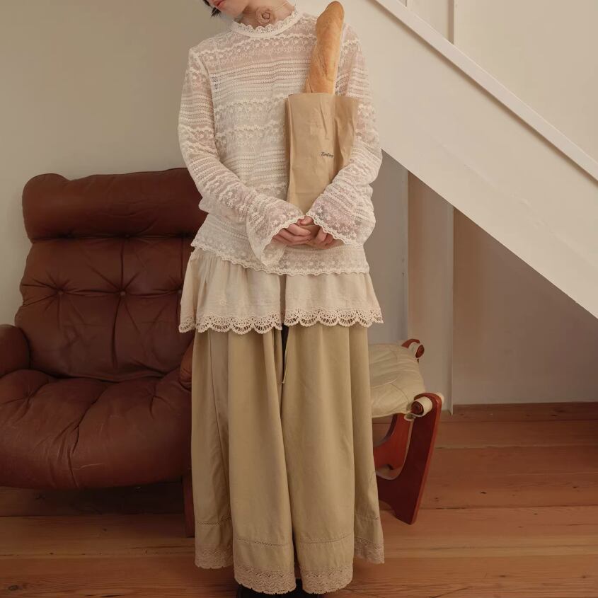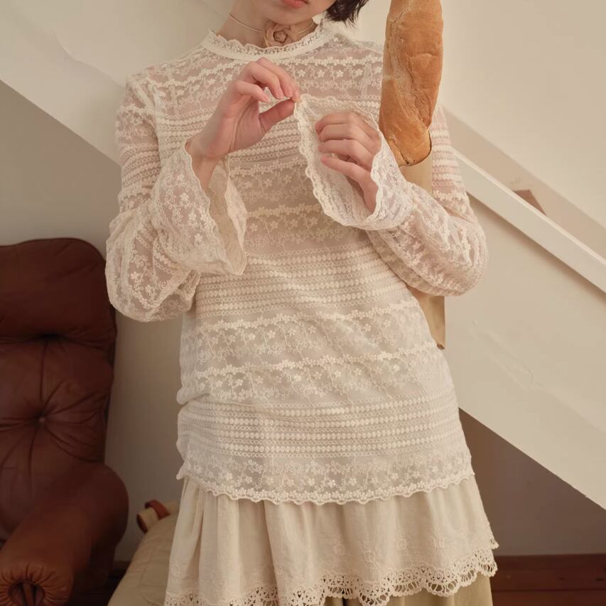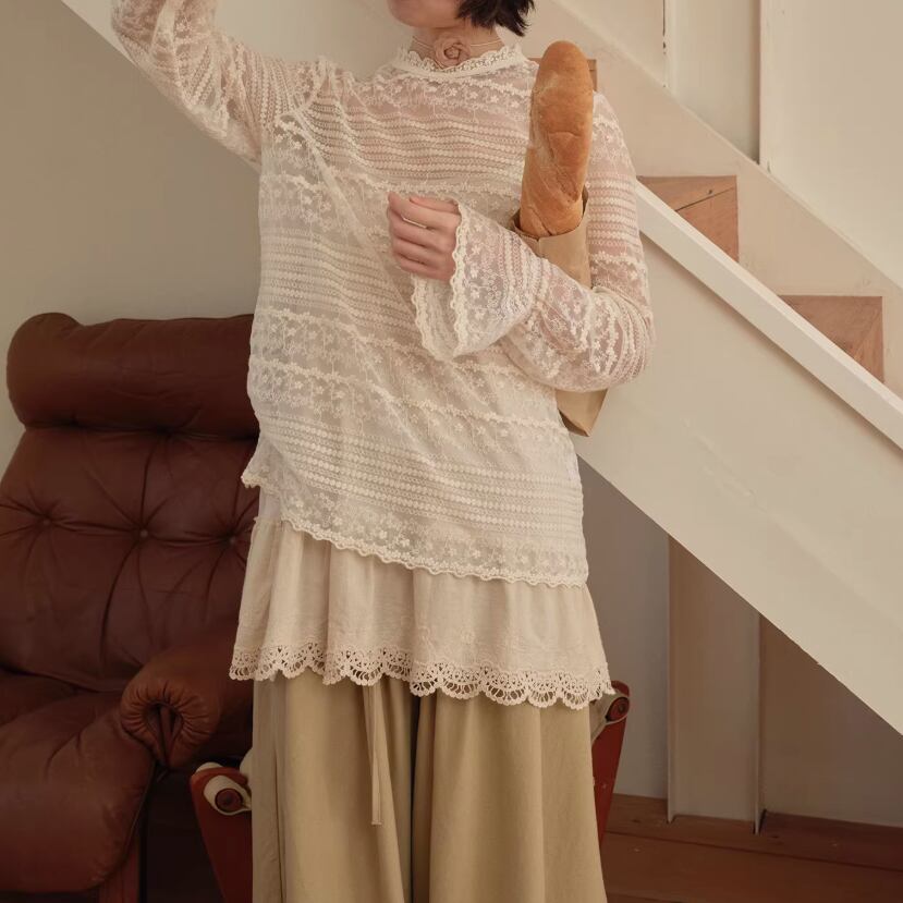 裾レースフラワー刺繍インナートップス ・9989
