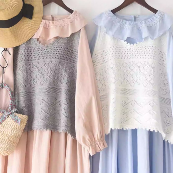 カラフル透かし編みベスト ・8410