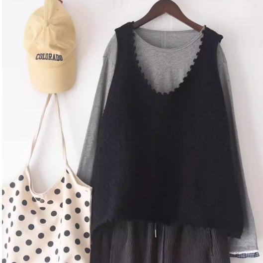 ノーカラーニットベスト ・3117
