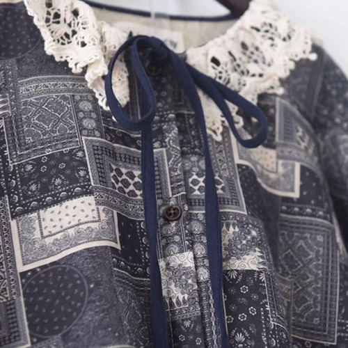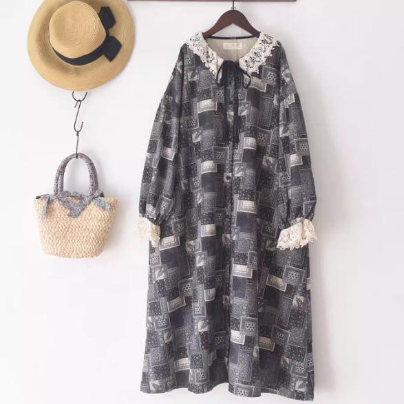 レース貼りコーデュロイロングワンピ ・6410
