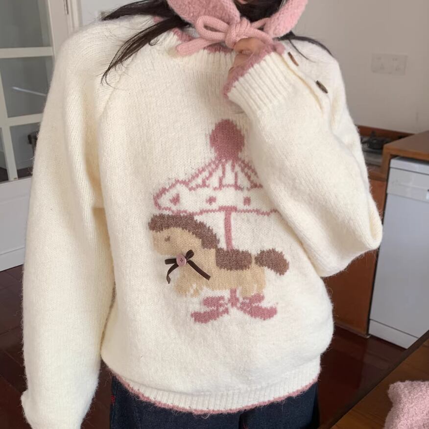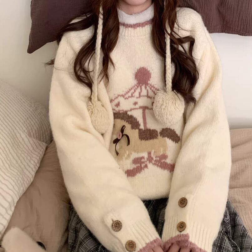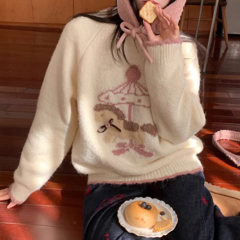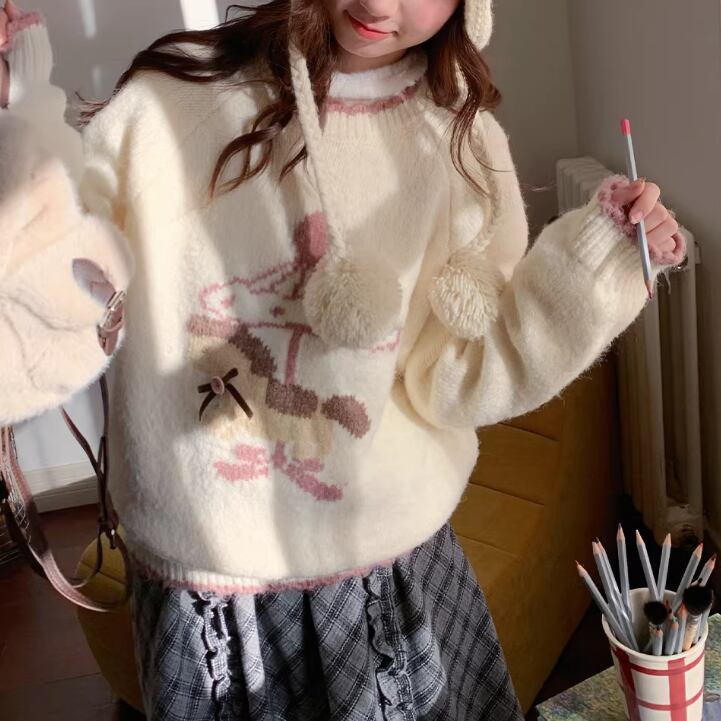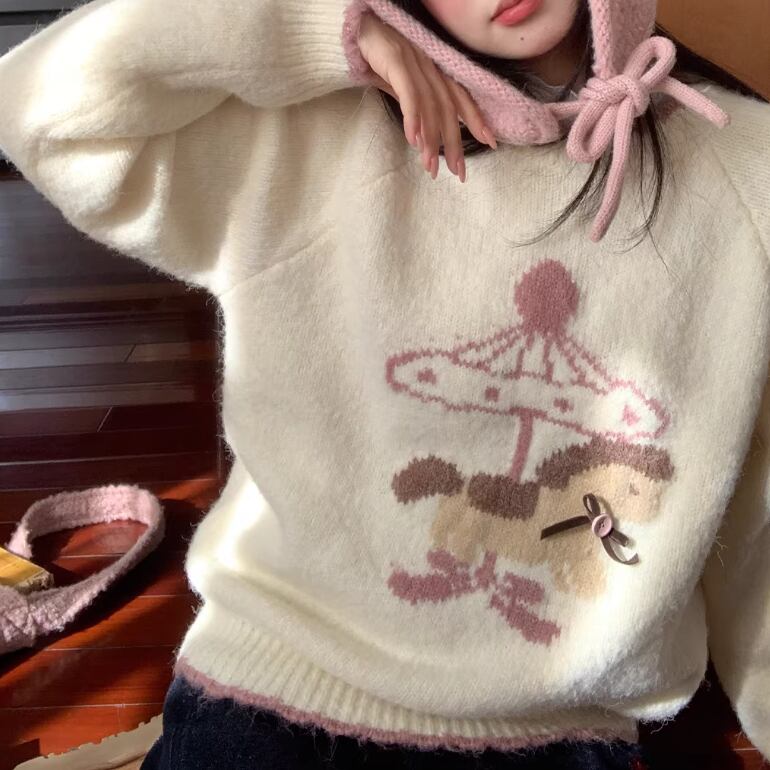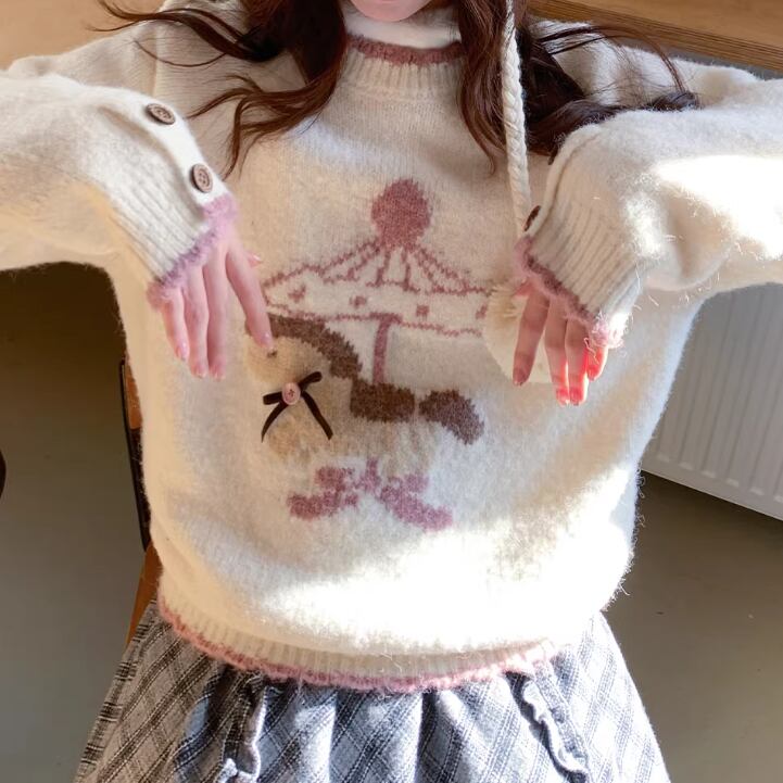 キャットデザインニットトップス ・8173