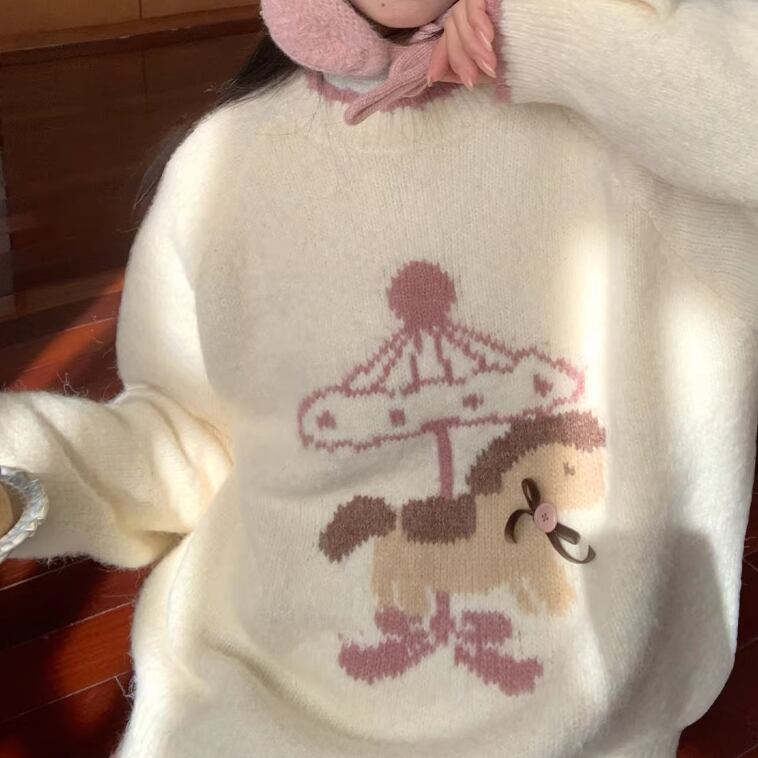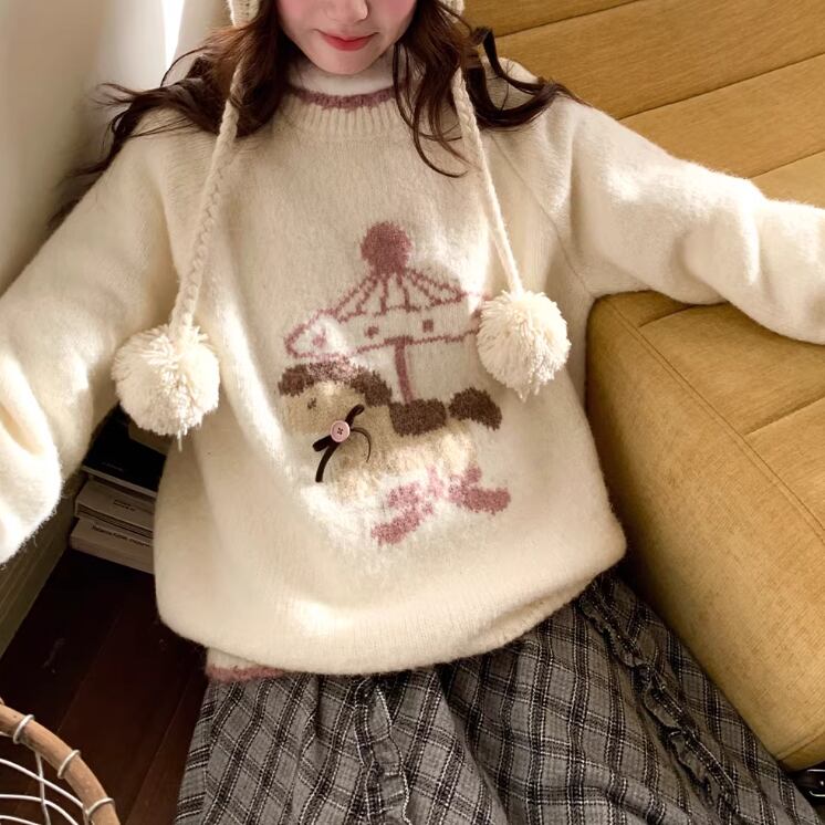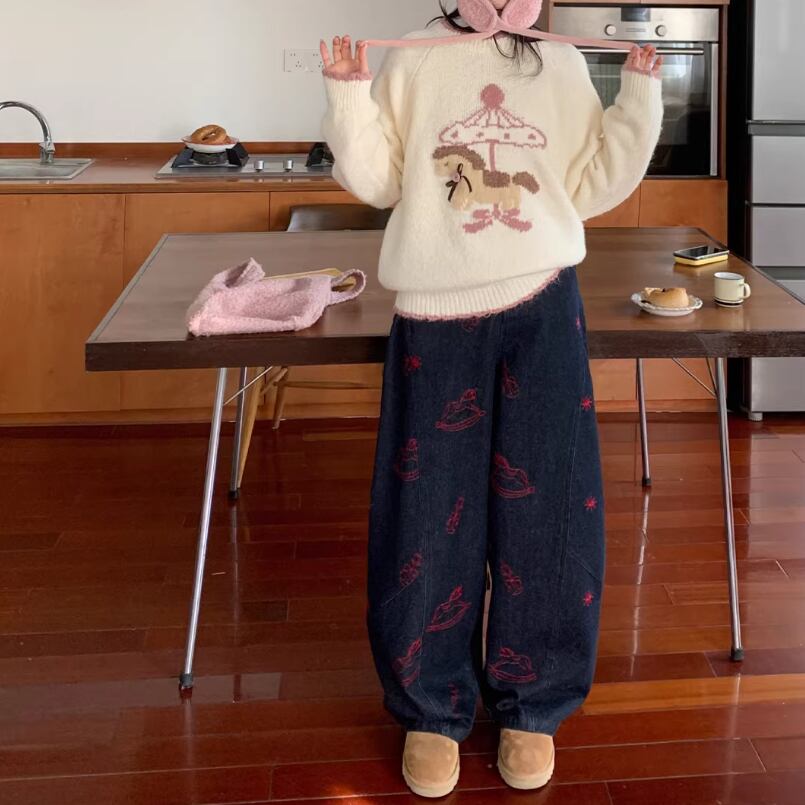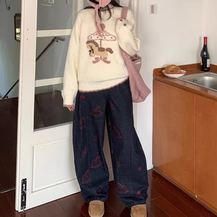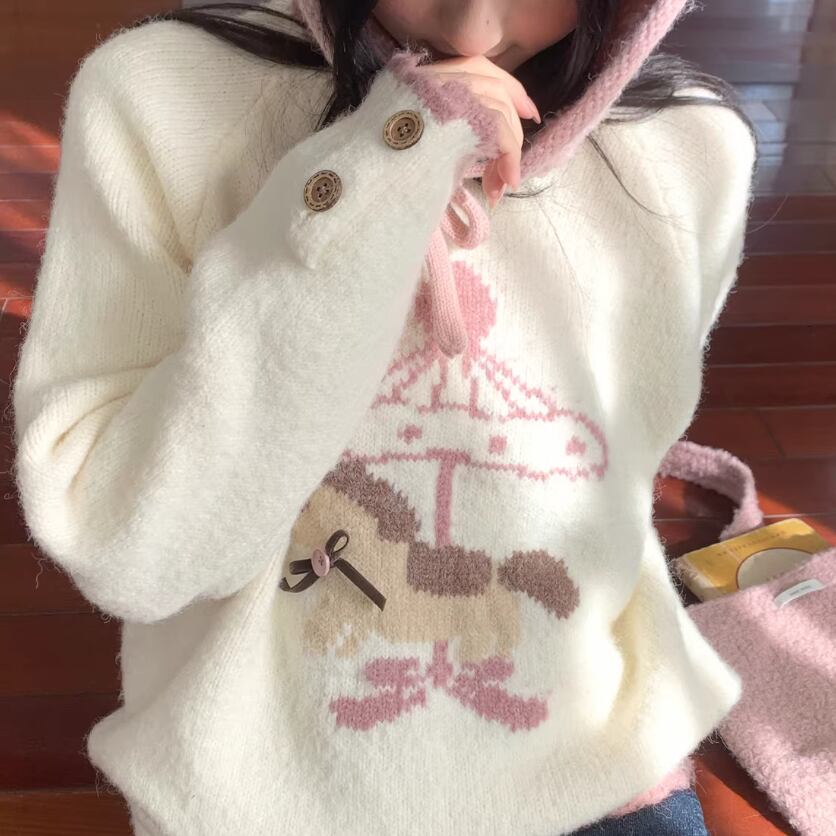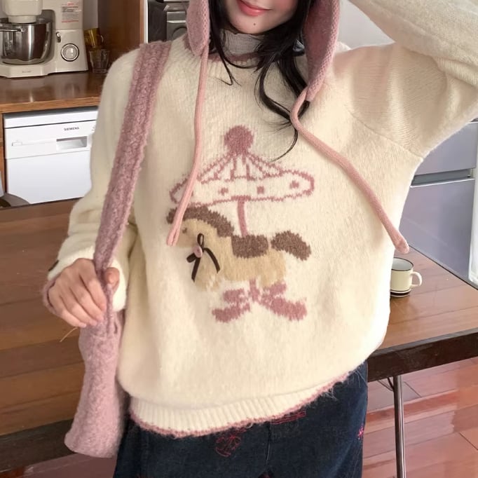 キャットデザインニットトップス ・8173