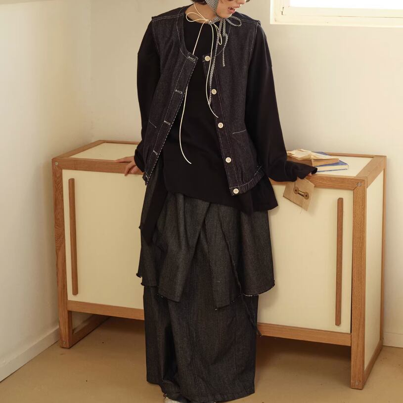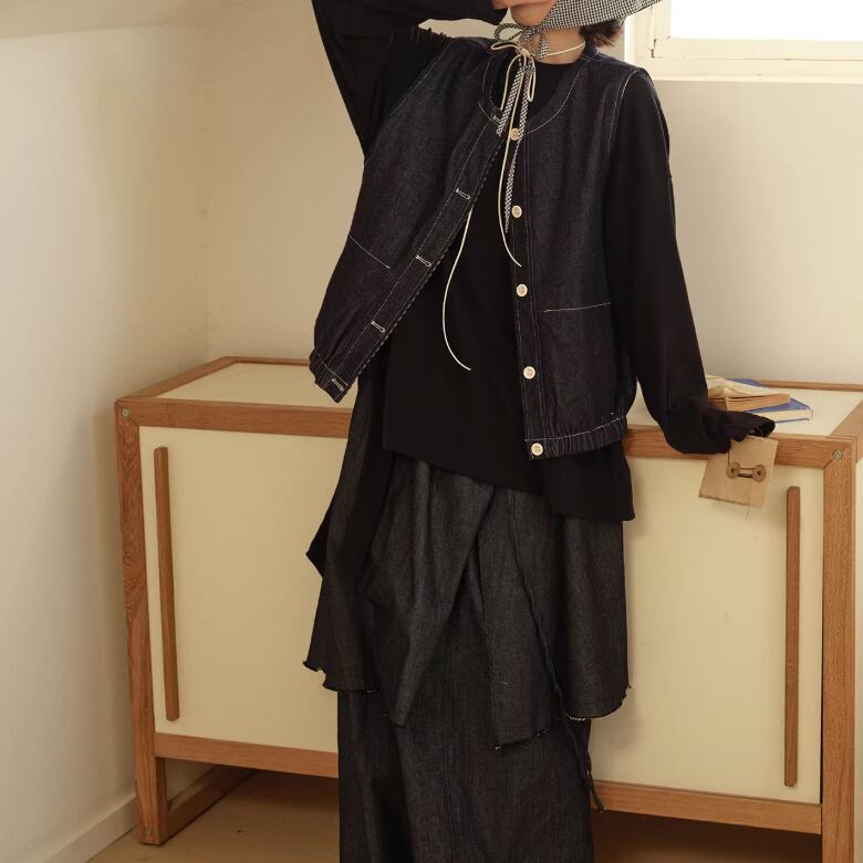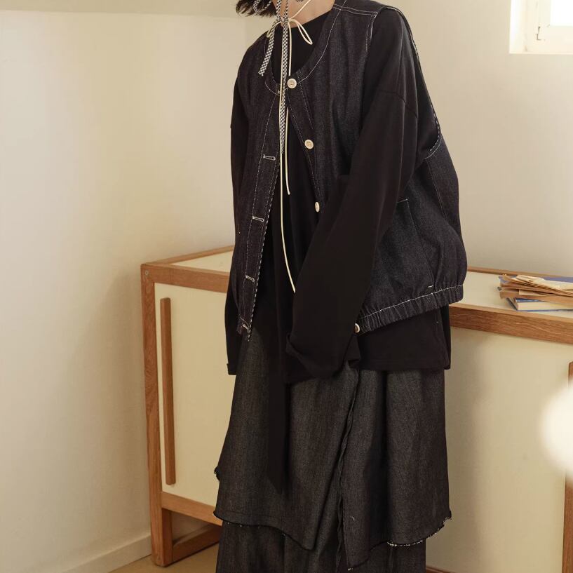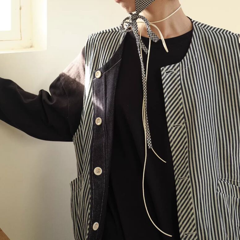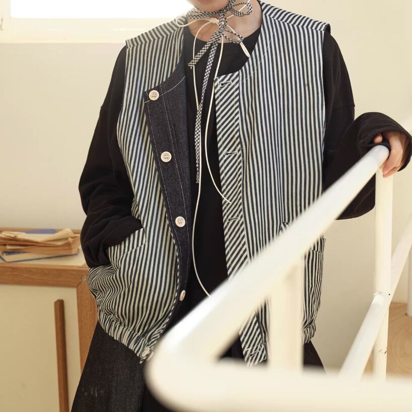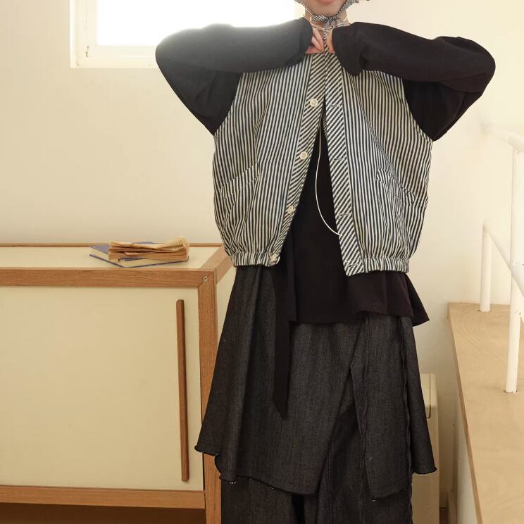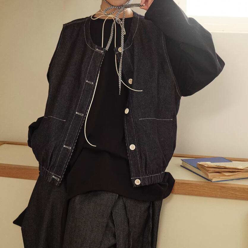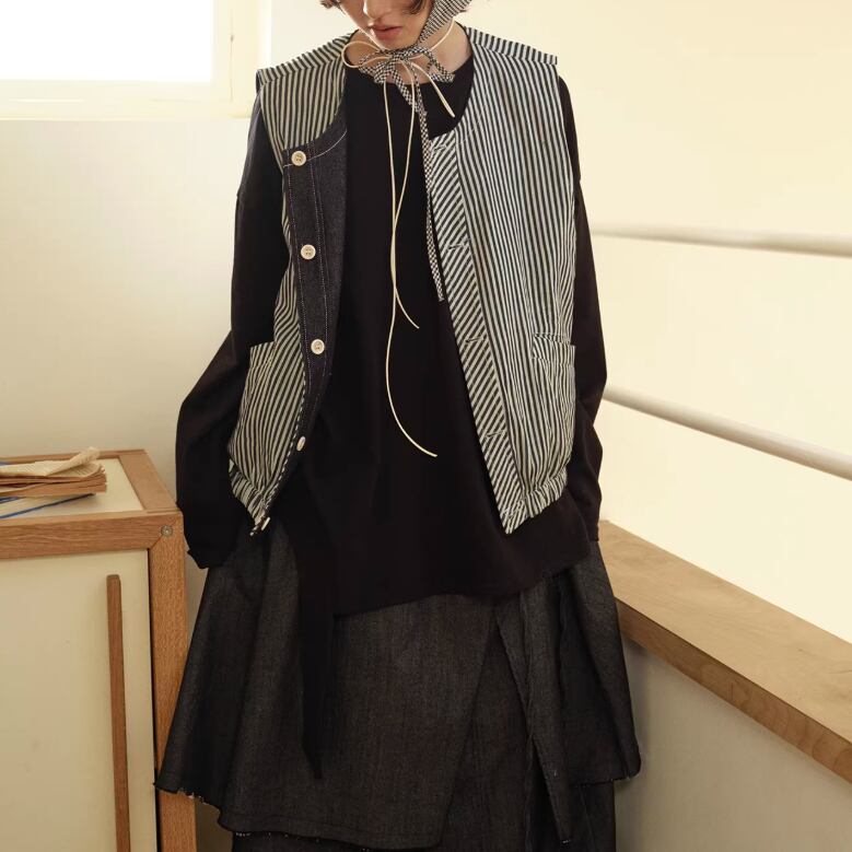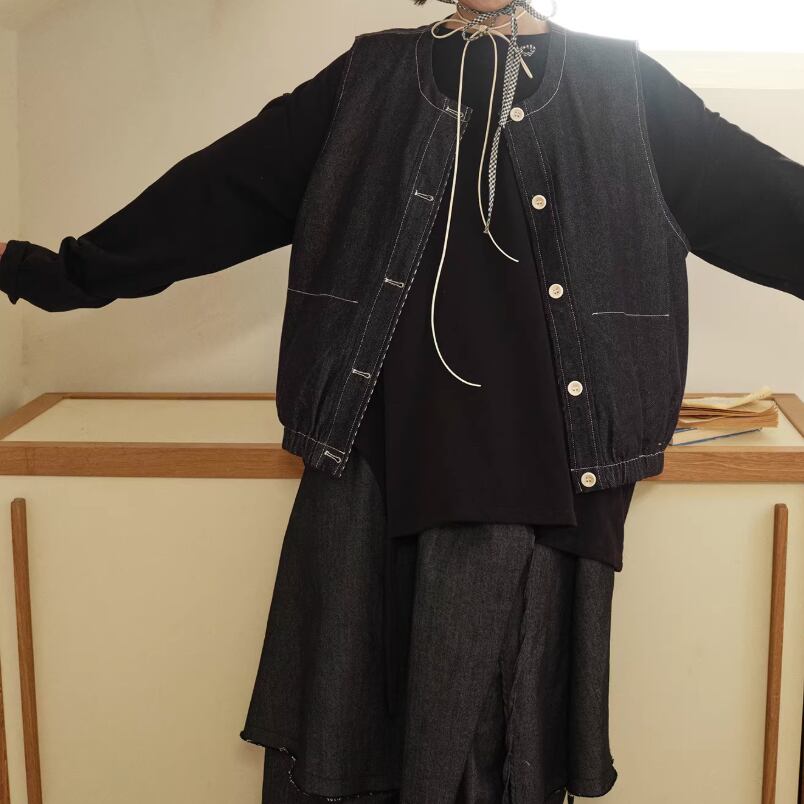ノーカラーニットベスト ・3117