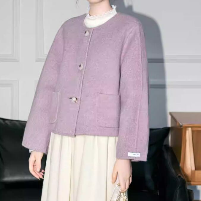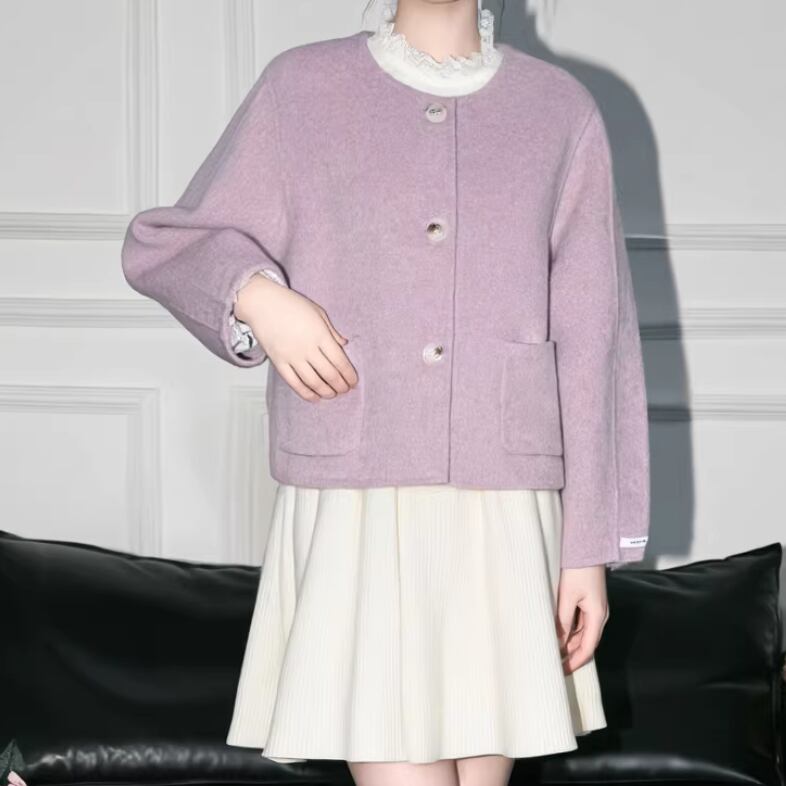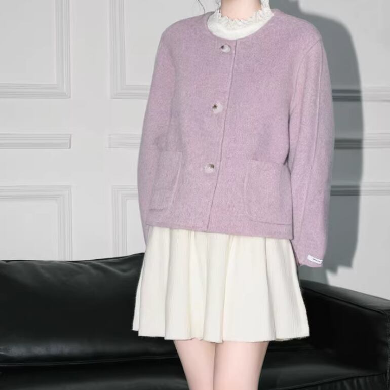 ノーカラーニットロングコート ・9036