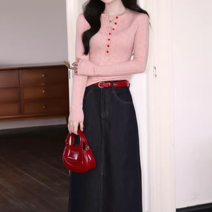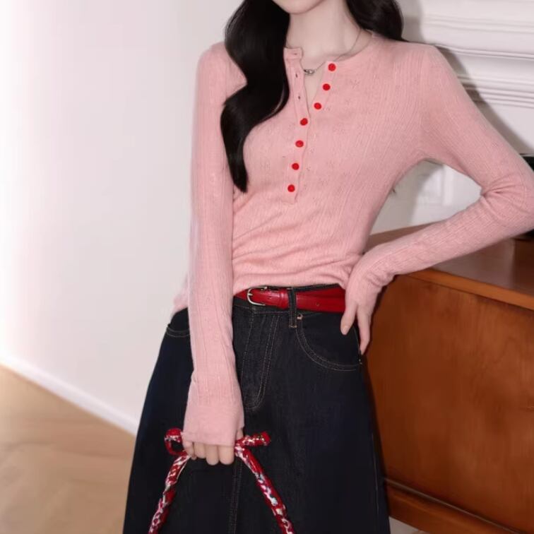 2色/ノーカラーネップ生地トップス ・10069