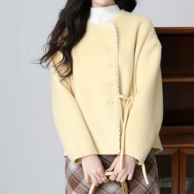 ノーカラーニットロングコート ・9036