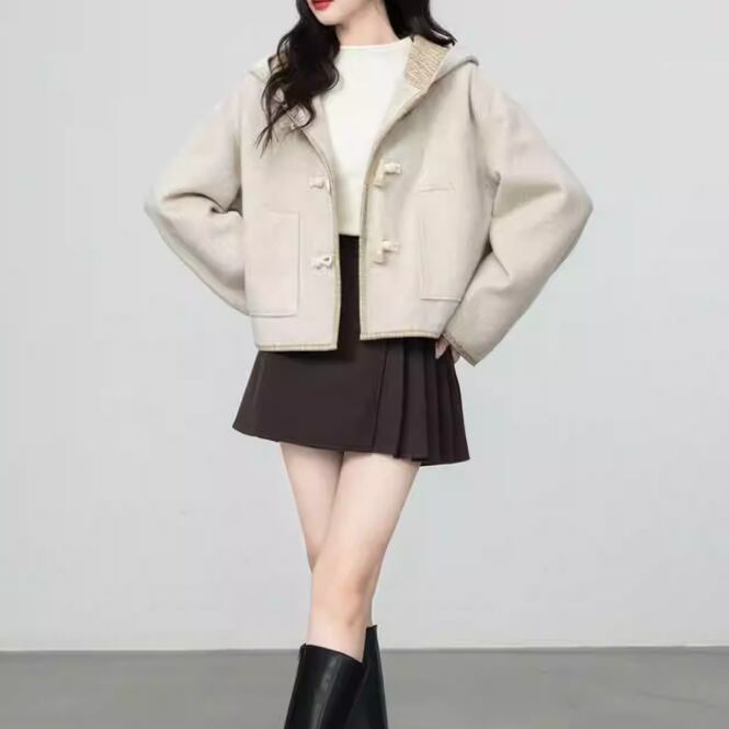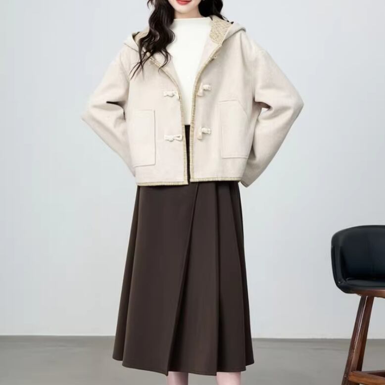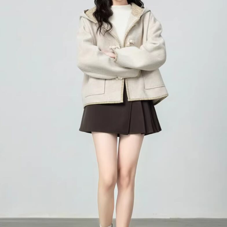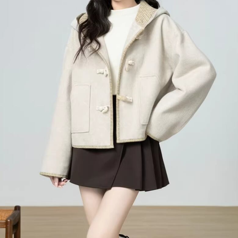 裏地チェック柄トグルボタンコート ・8717